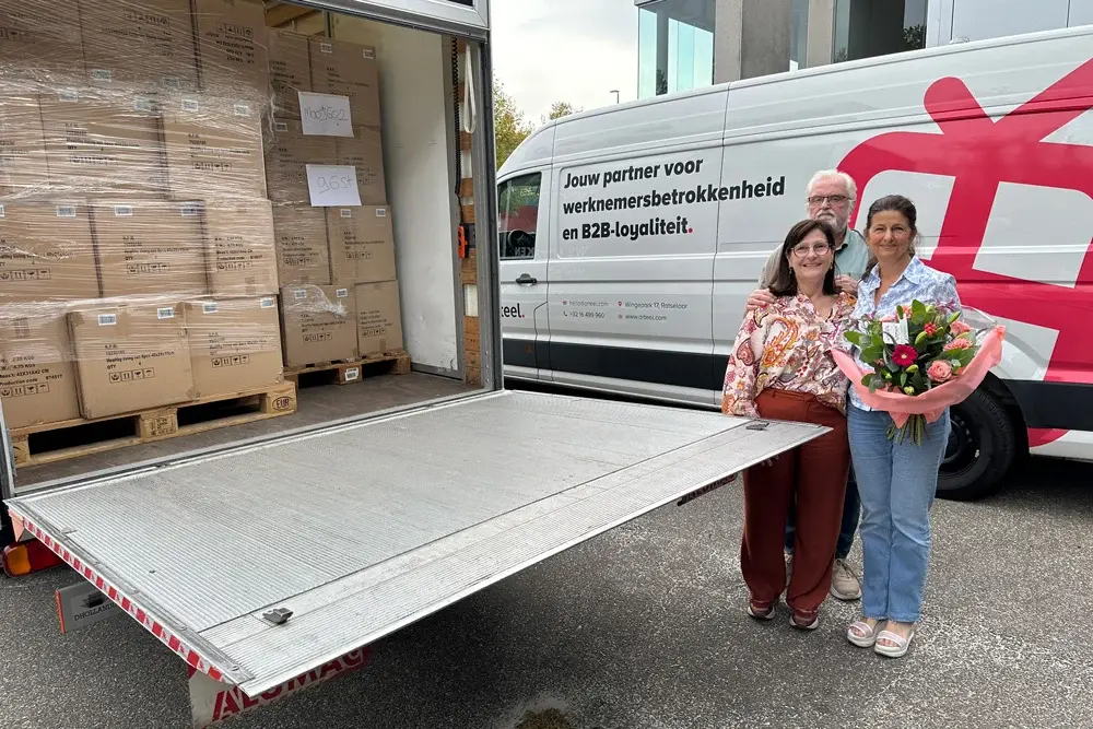 When I heard this, I knew: I wanted to contribute. Together with Arteel, we decided to donate 768 Healthy Living sets from our LuckyBird collection to Love in Action. Karin rented a truck, and together with her husband, drove from Wervik to Rotselaar to collect the 8 pallets.