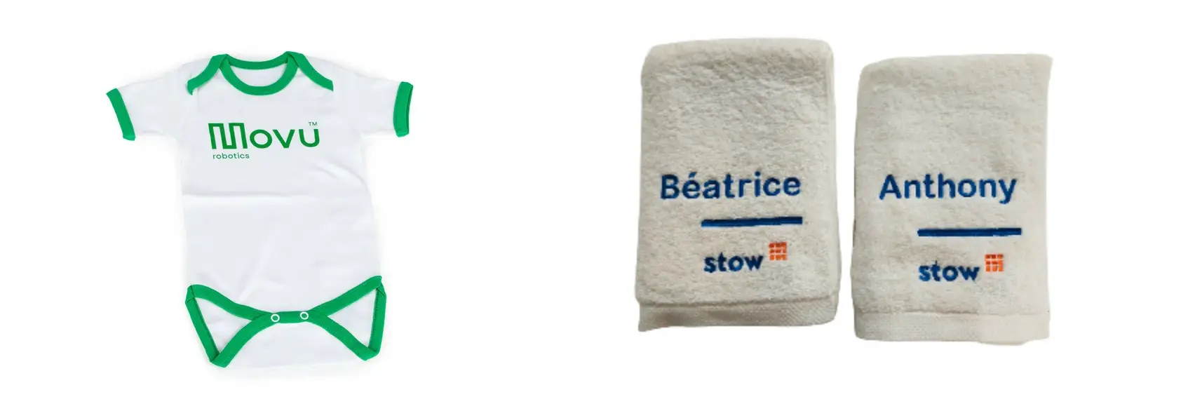 Personalization is perhaps the most important feature of the solution. Recognition now truly feels like recognition. A wedding? Not just a standard gift from the warehouse pioneer — but a personalized bath towel with the company logo and the couple’s names. A baby on the way? A cute onesie featuring the Movu or Stow logo. Retirement, wedding, and anniversary gifts are now more personal than ever.